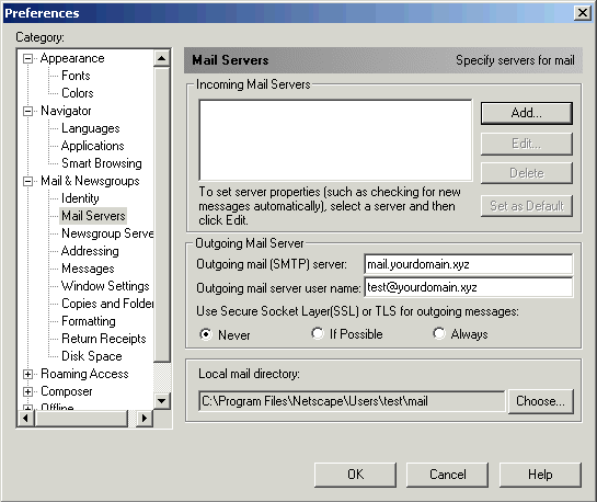 How to configure you browser for Your POP3 Email Accounts (Netscape Communicator instance)